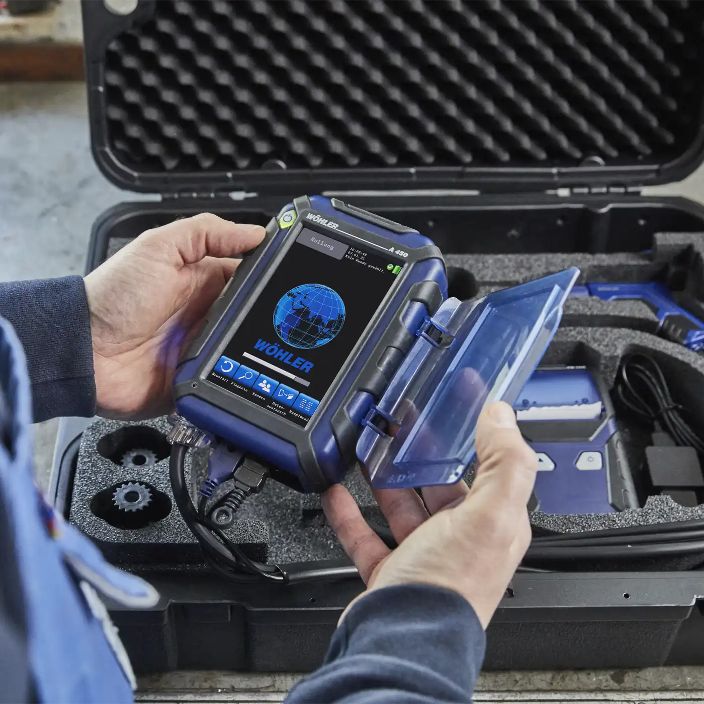 This is where Wöhler excels: A reasonably priced flue gas analyser that offers all measurement and tuning functions. A small and lightweight flue gas analyser enclosed in an eye-catching, robust housing. The Wöhler A 450 is a handheld device with a user friendly touchscreen. Simply display all measurement data on the large screen, or connect the device and view the results on your mobile devices.