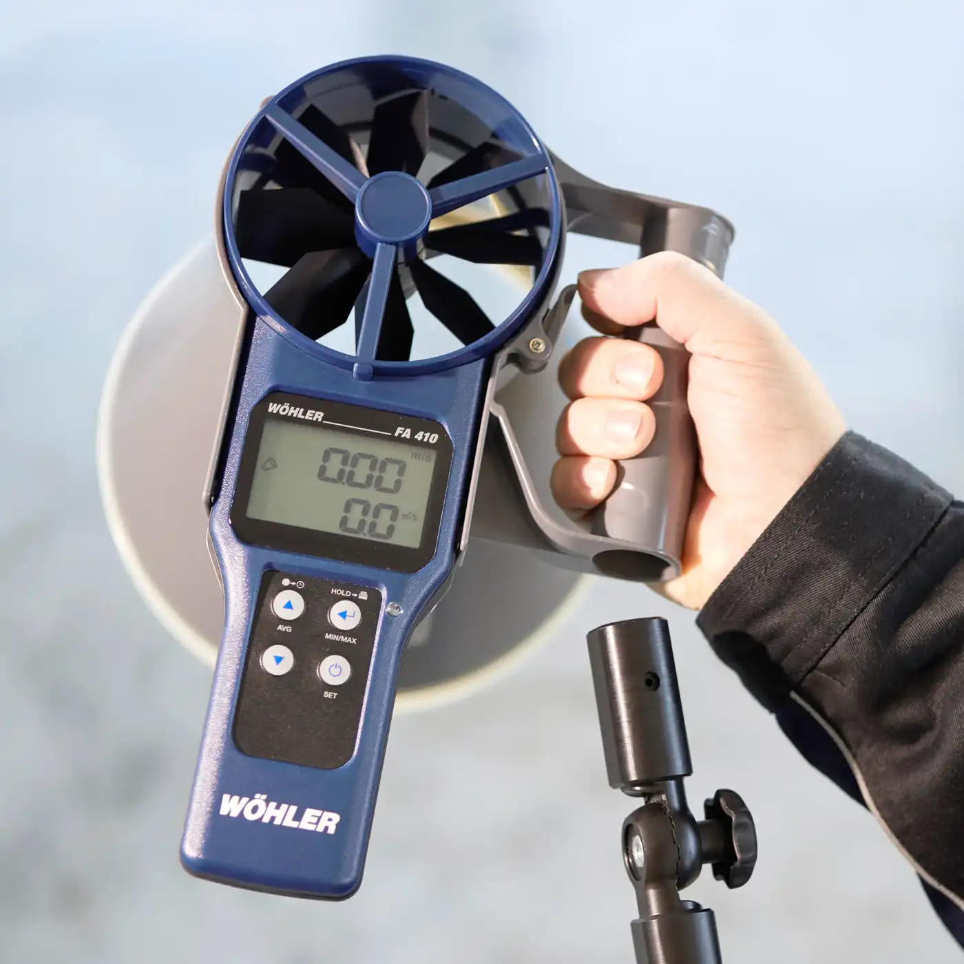 With the Wöhler FA 410 or FA 430 you can reliably determine air velocity and temperature at air diffusers. In addition, the Wöhler FA 430 determines the CO2 content to assess the air quality.