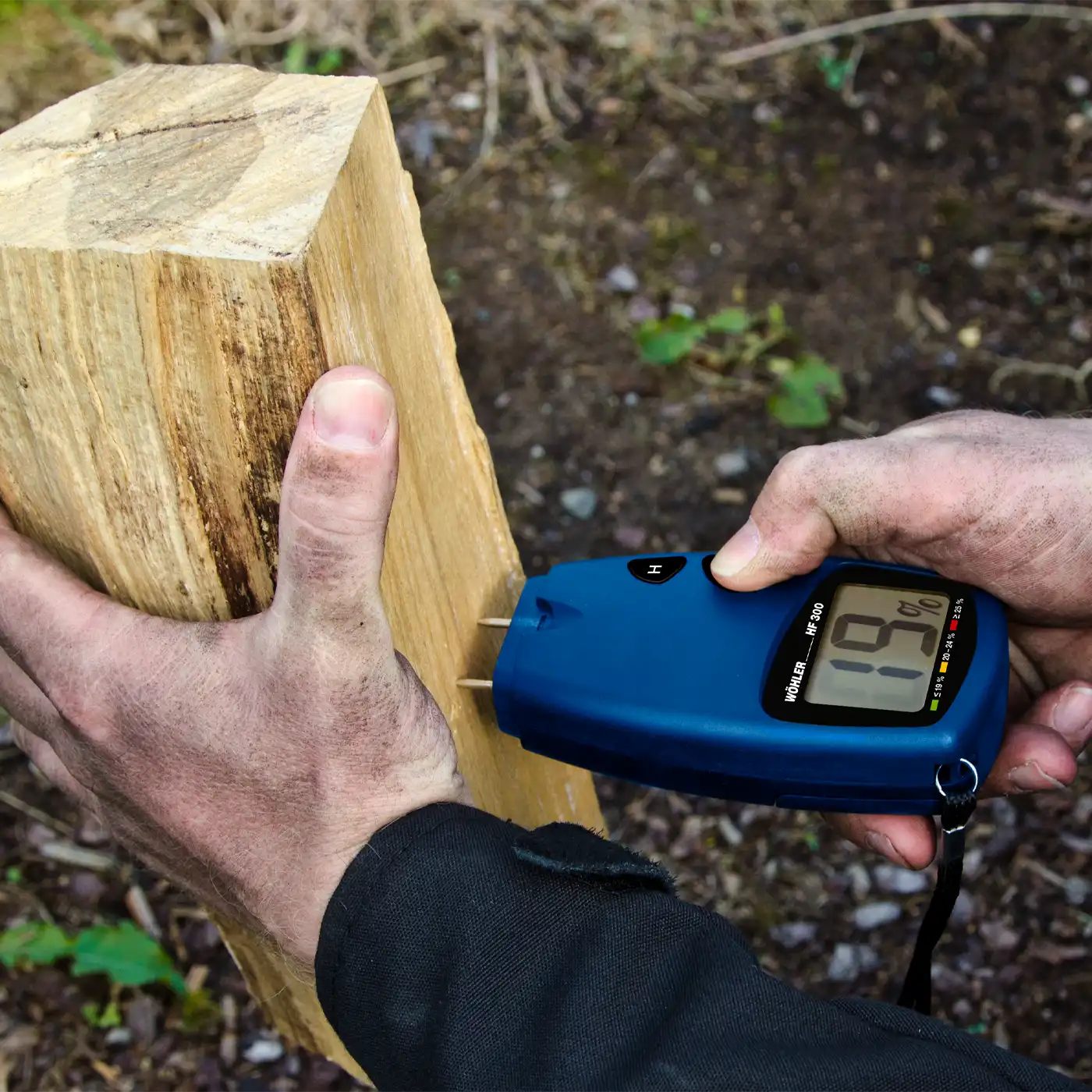 The Wöhler HF 300 is an easy to use instrument for determination of wood moisture. Depending on the kind of wood the needles can be pushed up to 5 mm into the log.