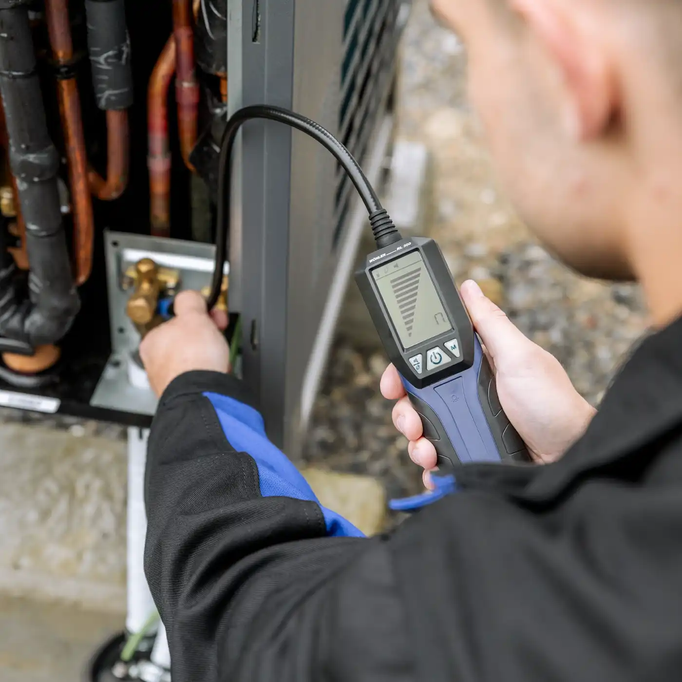 It’s essential to trust your refrigerant leak detector for both your safety and the environment. The Wöhler RL 300 meets the rigorous testing standards of DIN EN 14624-2020, a benchmark that only a select number of devices on the market achieve. Thanks to its exceptional sensitivity, it reliably identifies refrigerant leaks. This reliability has been validated by independent laboratory tests for propane (R290).