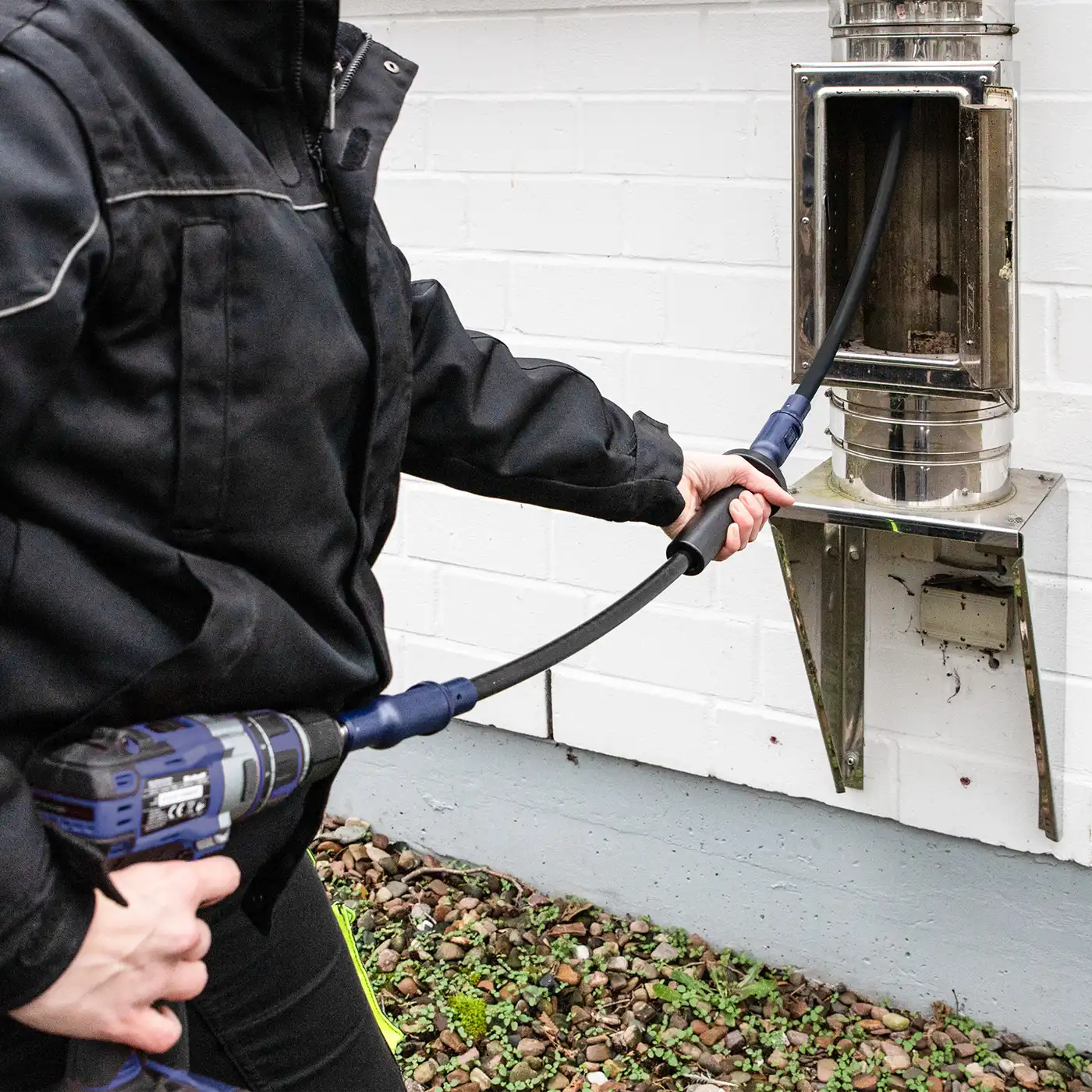 With Wöhler Snap & Sweep you can clean ventilation systems quickly and thoroughly without the help of a second person. Various cleaning attachments are available for the cleaning system, which are attached to the rod with a click. This way you are optimally equipped for the situation on site. The rodes are robust but flexible and therefore perfectly suited for working in the ventilation pipe. With your cordless screwdriver or drill, you can then rotate the rods together with the brush to guarantee powerful cleaning. Even heavy dust deposits can be removed thoroughly. When you push the cleaning attachment up, you can attach further rods in seconds, so that you only work with the rod length you need. The Wöhler Snap & Sweep carrier bag ensures clean transport. It is spread out to the ceiling and becomes a support for your stored equipment while you work. This keeps your working area clean. Professionalism that impresses the customer