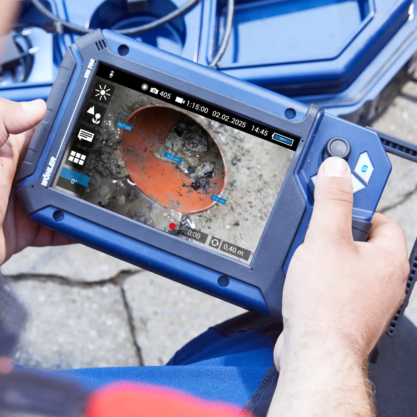 With the Wöhler Video Inspection App, you can use your smartphone or tablet as a second display. The camera transmits all image and video data to it via WLAN. Your colleague or customer can then follow the entire video inspection, even if he is positioned at the end of the inspected pipe.