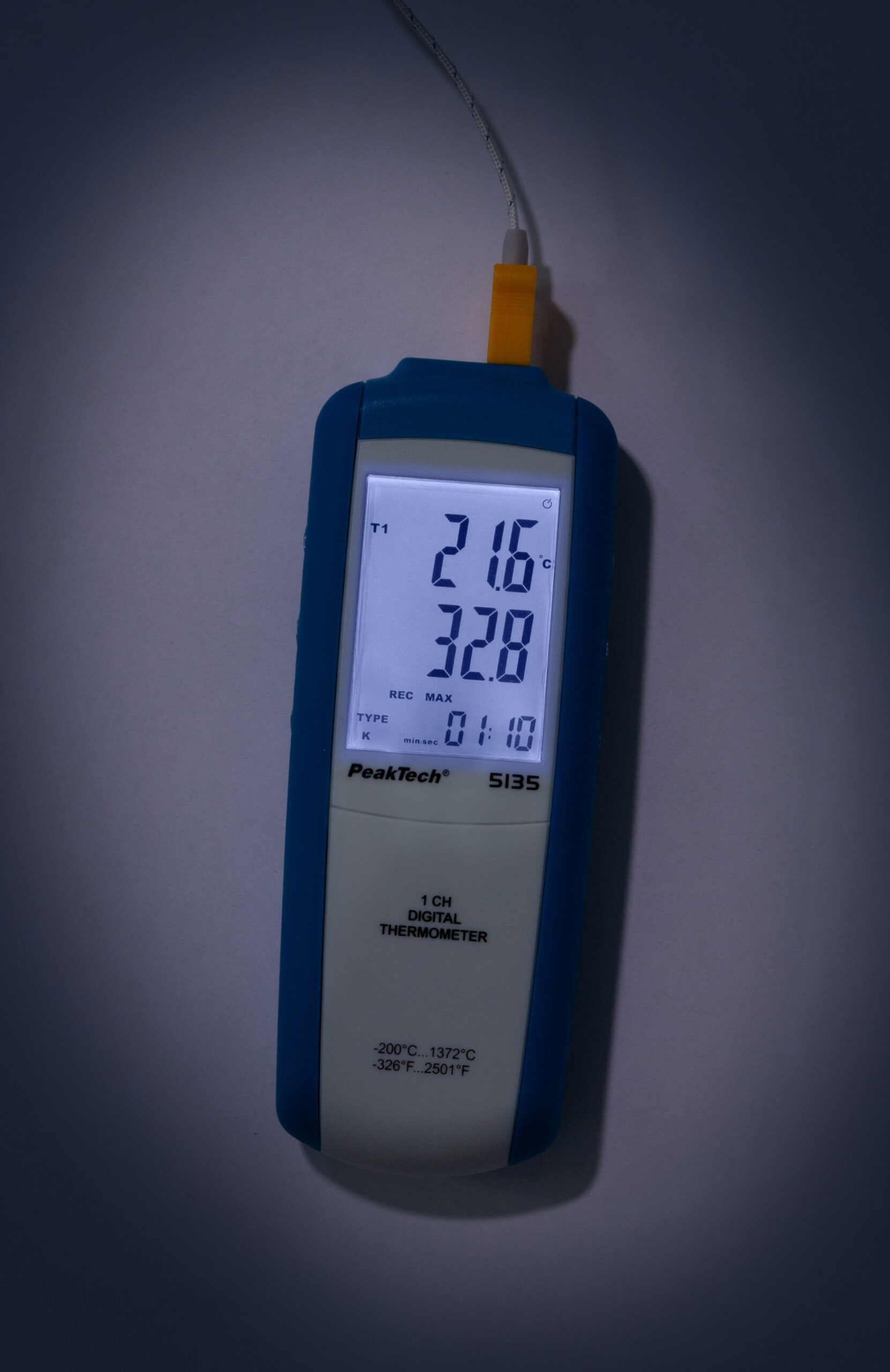 PeakTech 5135 adalah termometer digital dengan desain modern dan praktis dengan 3 1/2-digit, max. 1999, simbol fungsi dan lampu latar, yang menawarkan waktu respons cepat dan akurasi tinggi. Fungsi pengukuran direalisasikan oleh termokopel tipe K, yang menawarkan resolusi 0,1 ° dan sangat serbaguna. Area aplikasi optimal adalah misalnya pendinginan-pengondisian udara, produksi dan penyimpanan makanan, pertanian, kimia, dan industri.